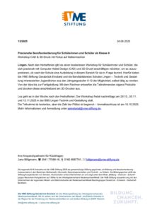 Presseinformation 132025 – Praxisnahe Berufsorientierung für Schülerinnen und Schüler ab Klasse 9 Workshop CAD & 3D-Druck