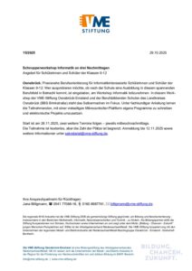 Presseinformation 152025 – Schnupperworkshop Informatik an drei Nachmittagen